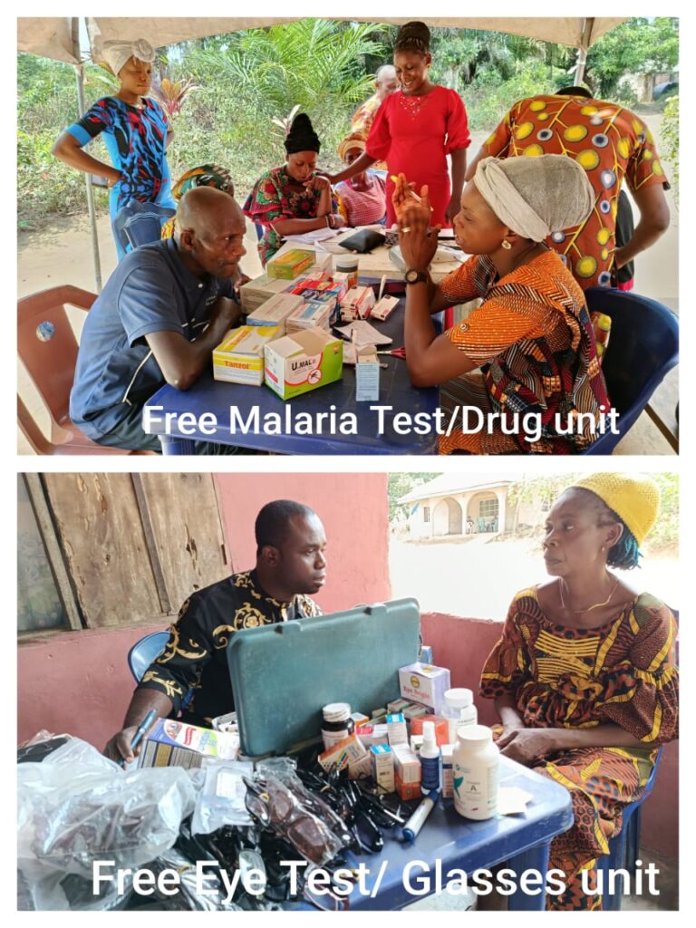 * Free Medical service (Eye Test/ Glasses, BP check, and Malaria medication)