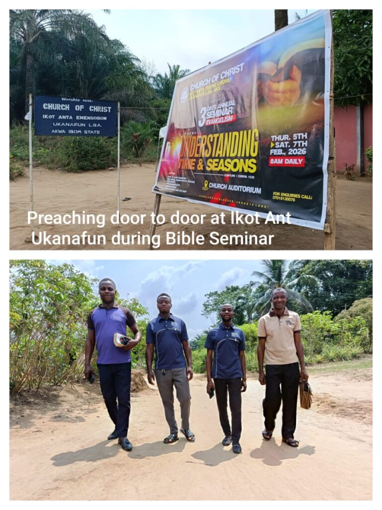 February 5 – 7, we had a Three day Bible Seminar/ Evangelism at Church of Christ Ikot Ant on the theme * UNDERSTANDING TIME AND SEASON “which features: